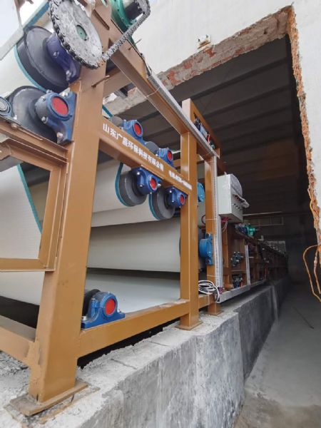 沙场污泥脱水压滤机主要由驱动装置、机架、压榨辊、上滤带、下滤带、滤带张紧装置、滤带清洗装置、卸料装置、气控系统、电气控制系统等组成。具有构造紧凑、式样新颖、操作管理方便,处理能力大、滤饼含水率低,效果好等处理优点。